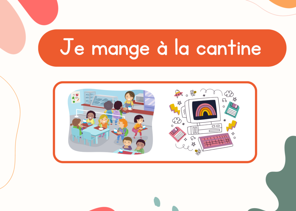 2. lire la phrase (verbe et lieu tel que je mange à la cantine) et choisissez l’image correspondante
