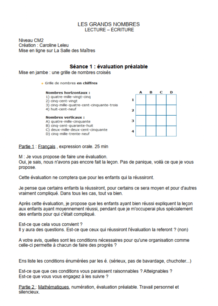 4 séances de lecture et écriture des grands nombres pour classe de CM2.
