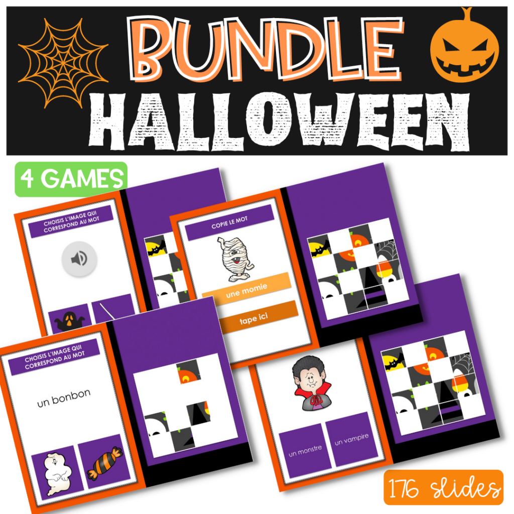 Ensemble de jeux qui permettront à vos élèves de français langue étrangère de travailler le vocabulaire d’Halloween