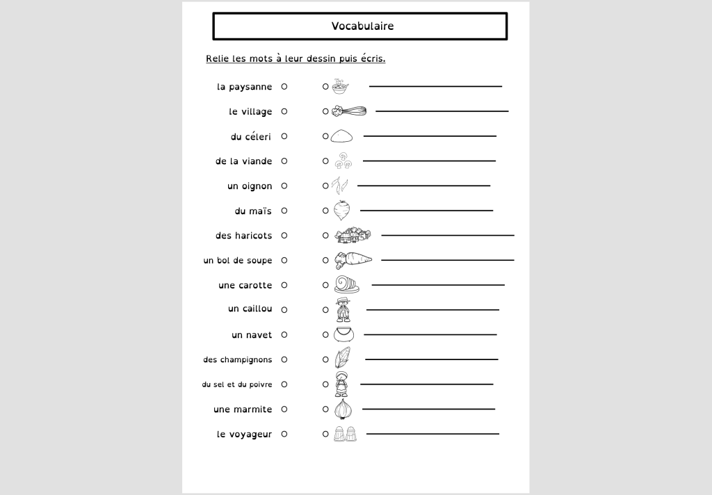 Page 2 : vocabulaire à relier et recopier