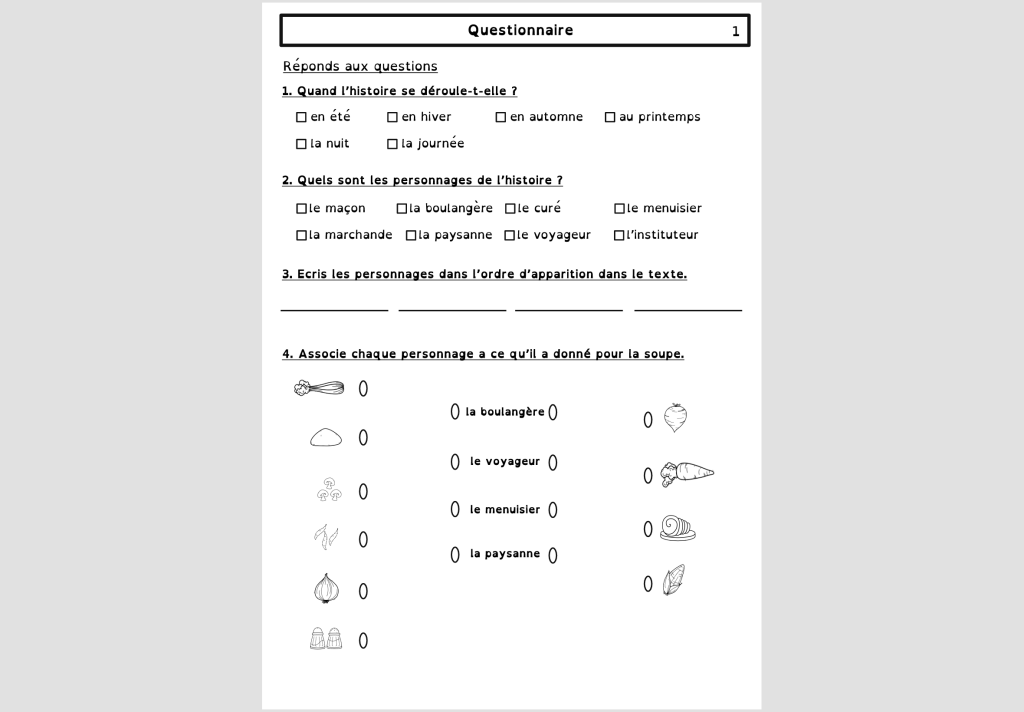 Page 4 et page 5 : questionnaire sur l’histoire