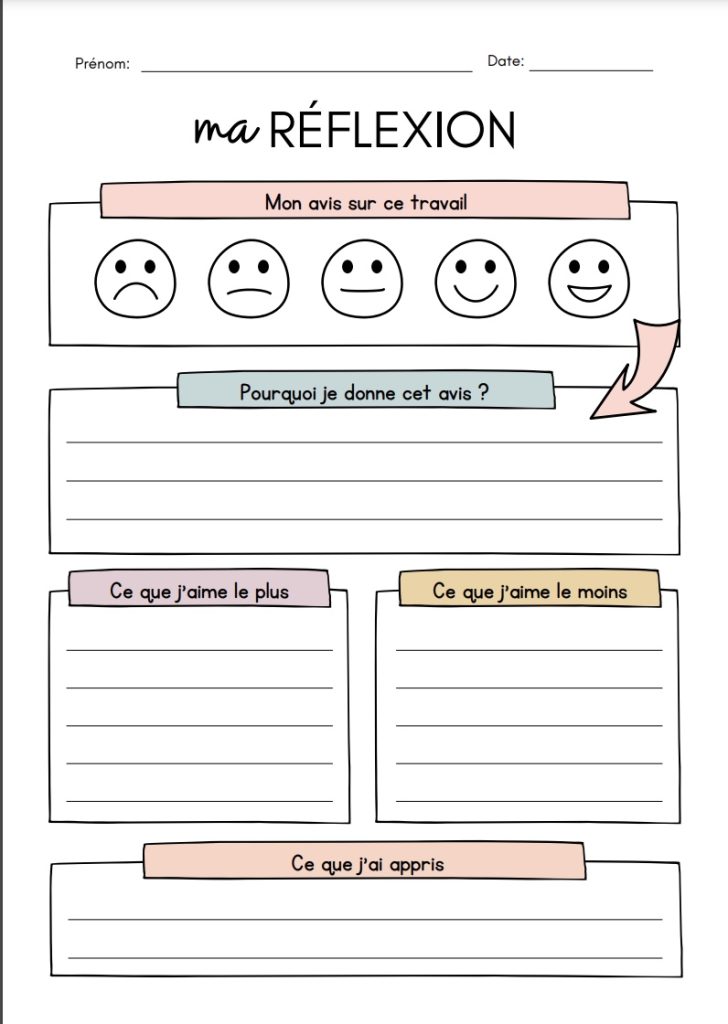 Ces pages de réflexion en français permettent aux élèves de se préparer à leur conférence pour partager leur apprentissage ( école internationale IBO)