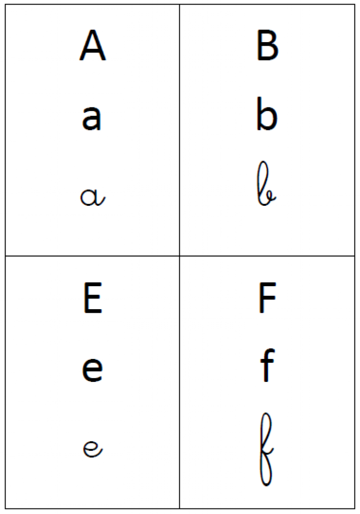 Imagier de l’alphabet permettant l’apprentissage de l’alphabet dans les 3 écritures.