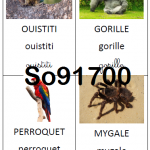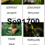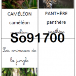 Imagier des animaux de la jungle contenant 14 cartes animaux + une couverture. Chaque carte contient une photo de l’animal, et son nom écrit dans les 3 écritures (capitale, scripte et cursive).