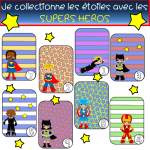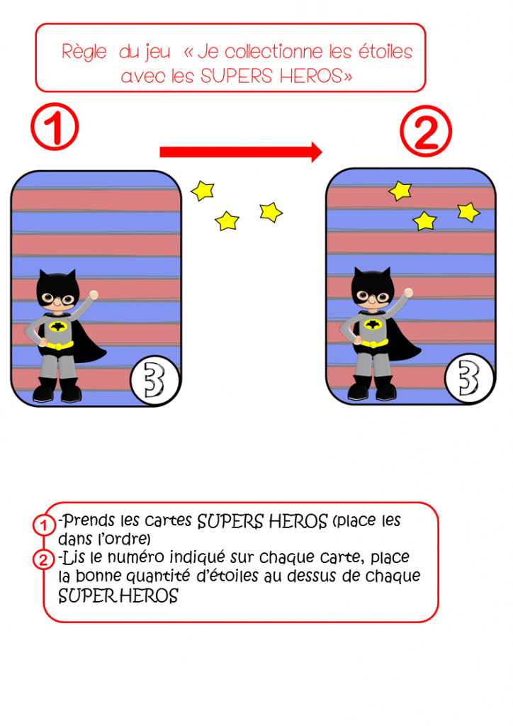 -Lis le numéro indiqué sur chaque carte, place la bonne quantité d’étoiles au-dessus de chaque SUPER HEROS!