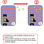 Voici un jeu sur le thème des SUPERS HEROS avec lequel l’enfant doit créer une quantité donnée par la lecture des chiffres.
