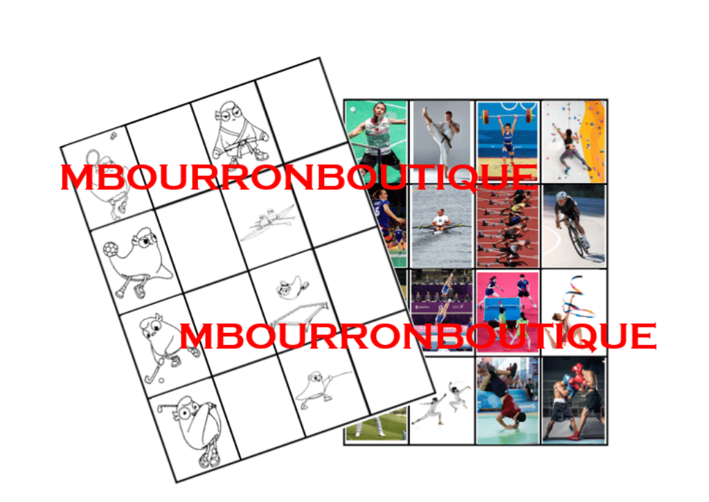 Un jeu d’association logique d’illustrations de la mascotte PHRYGE avec les photographies des différents sports des Jeux Olympiques.