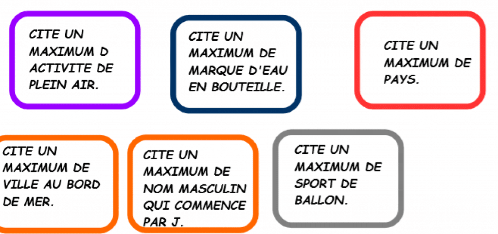 - Chaque joueur doit trouver un mot et si un mot est ré donné ou non correspondant au thème l’élève est éliminé de cette partie.