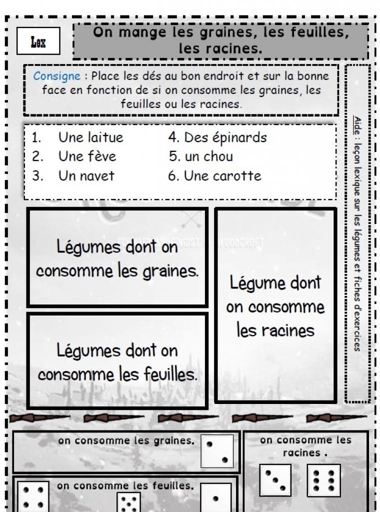 Jeu de révisions en atelier sur le lexique des légumes et aromates en lien avec le livre d’hachette : les ateliers de Lexique au CE2