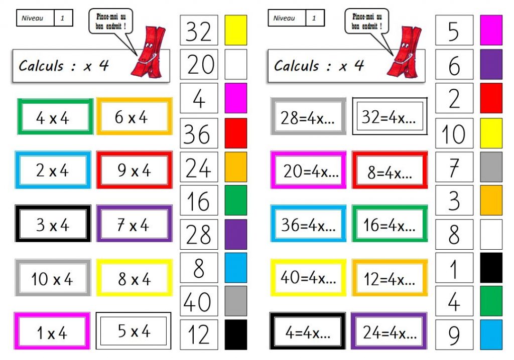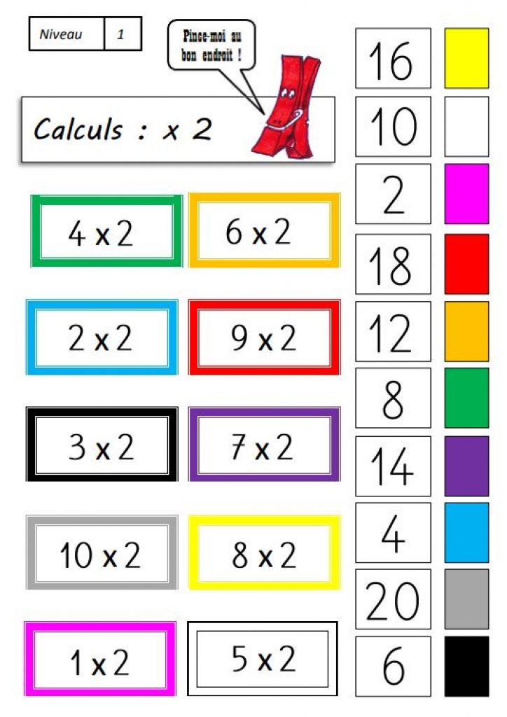 Travail en autonomie auto correctif présenté sous forme de jeu pour travailler mes multiples