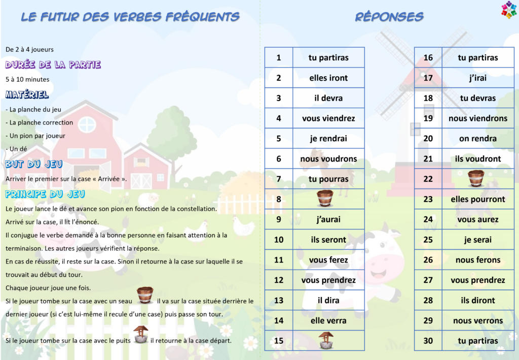 Jeu de plateau – Conjugaison – CE2/CM – Le futur des verbes fréquents