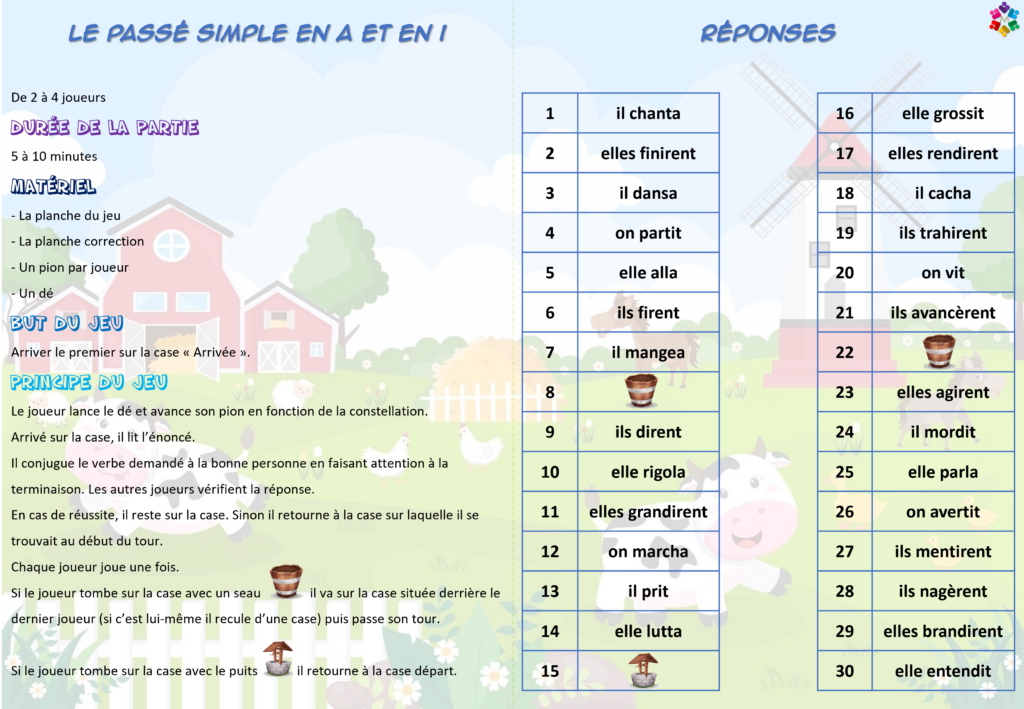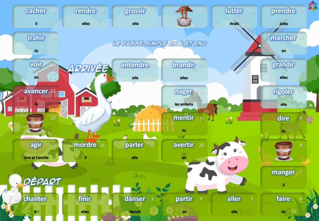 Jeu de plateau – Conjugaison – CE2/CM – Le passé simple en a et en i