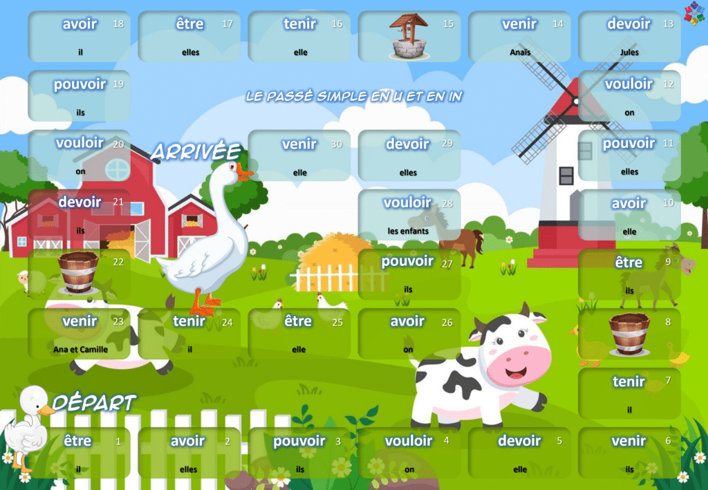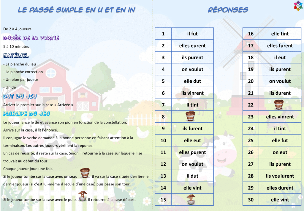 Jeu de plateau – Conjugaison – CE2/CM – Le passé simple en u et en in