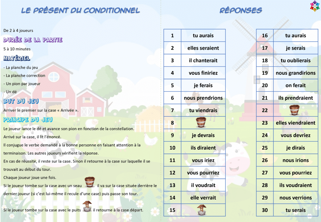 Jeu de plateau – Conjugaison – CE2/CM – Le présent du conditionnel