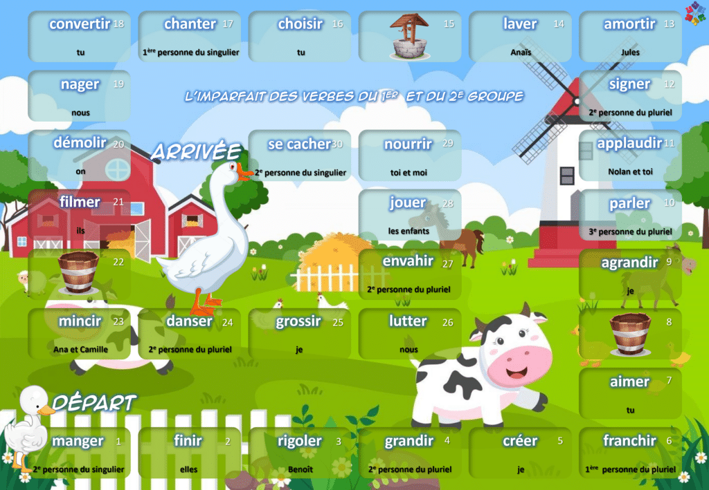 Jeu de plateau – Conjugaison – CE2/CM – L’imparfait des verbes du 1er et 2e groupe