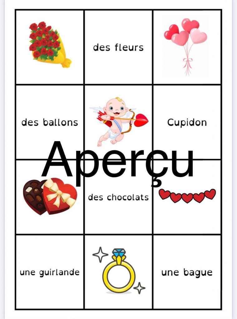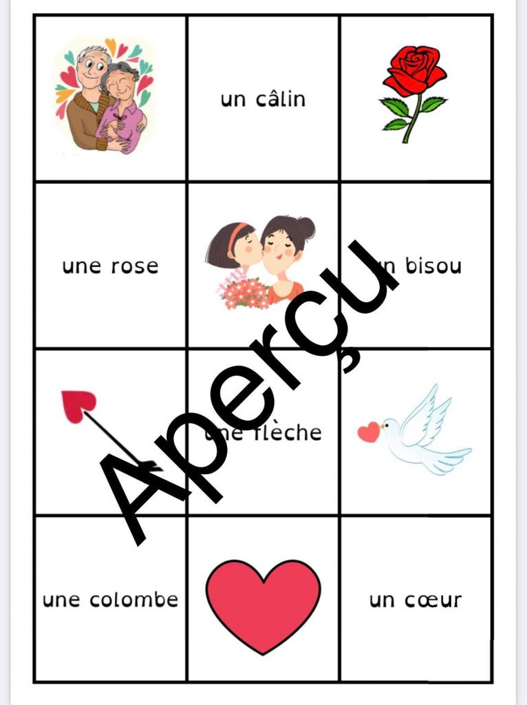 jeu x sur le vocabulaire de la Saint Valentin : Memory et Domino