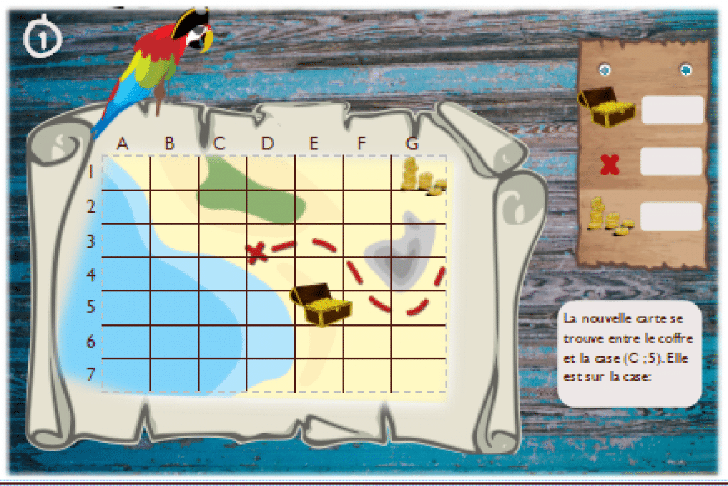 - 3 cartes au trésor où il faut noter l’emplacement