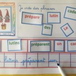 – Il faut reconstituer la phrase correspondant à la vignette en plaçant les bonnes étiquettes dans les cases prévues à cet effet.