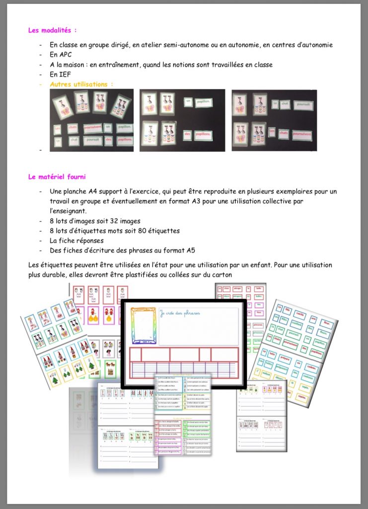 – Des fiches individuelles de report des phrases à écrire