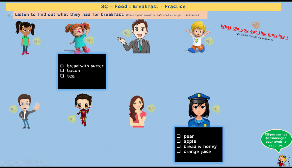 Pour les compréhensions orales, c’est aussi envisageable en groupe classe divisé en équipes qui, selon les activités, répondent soit sur ardoise soit en questionnaire de rapidité.