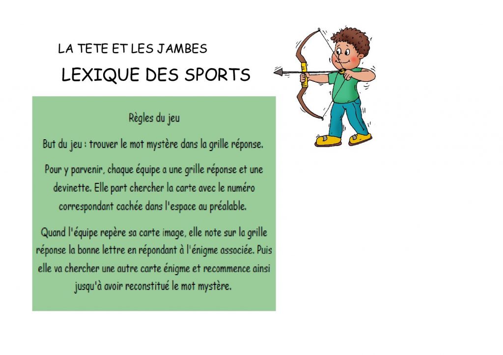 La tête et les jambes : jeu de piste lexique des sports
