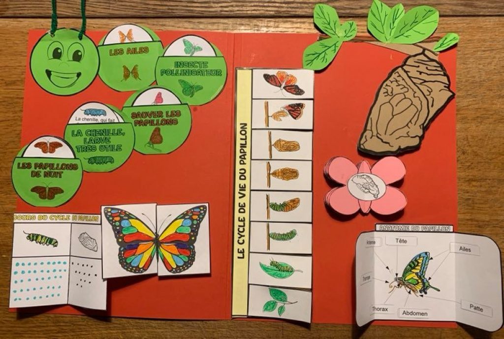 Attention, certains découpages peuvent être assez minutieux ( la chrysalide par exemple), pour mes élèves plus en difficulté, j’ai tracé un cadre autour, ils n’ont donc pas eu à découper cette forme biscornue !