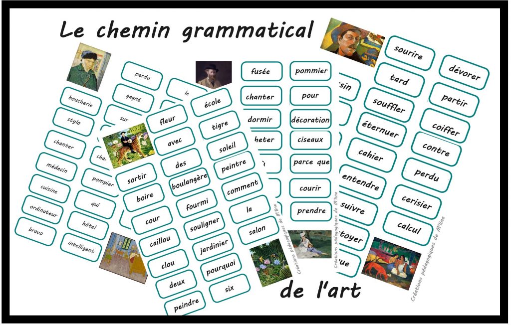 Le but est de colorier les noms communs ou les verbes pour aider les peintres à rejoindre leur œuvre.