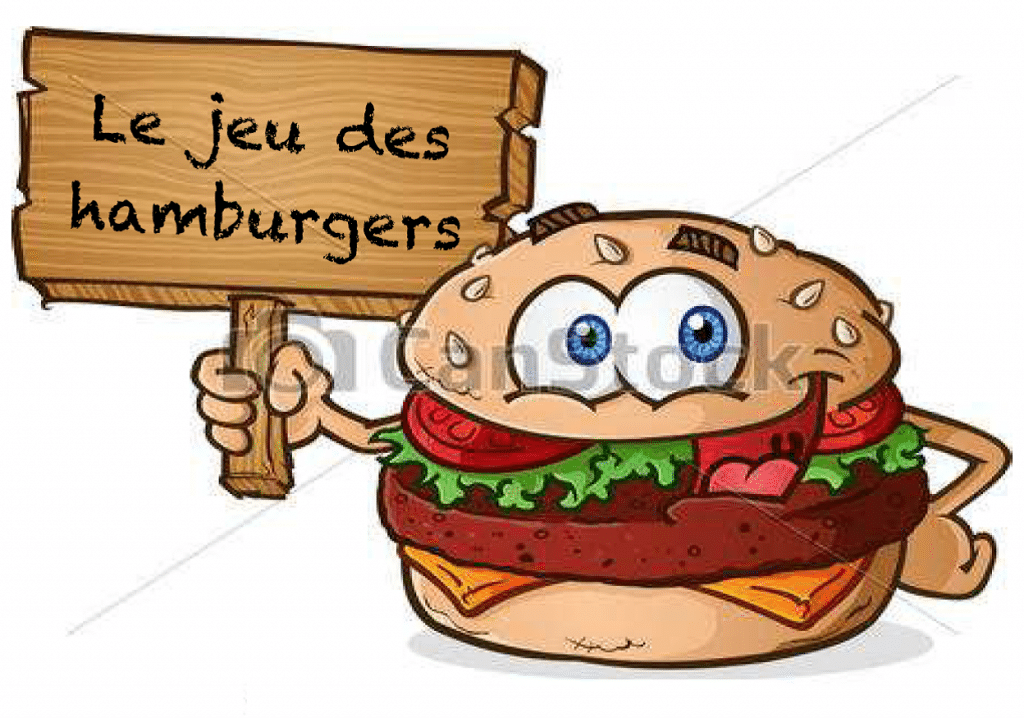 Chaque joueur à tour de rôle lance le dé 2 fois et retourne un pion hamburger de la couleur indiqué par le dé. Chaque hamburger retourné doit le rester le temps que tous les joueurs aient joué. Il additionne les nombres obtenus (on peut l’écrire sur l’ardoise ou utiliser la bande numérique fourni). Celui qui a le plus grand nombre gagne un morceau de son puzzle hamburger.
