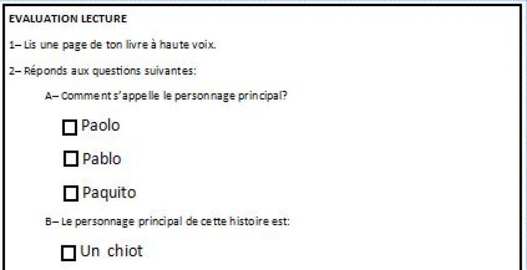• Une évaluation pour tester la lecture orale de vos élèves ainsi que leur compréhension.