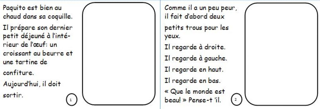 Les textes sont déjà écrits. L’enfant doit s’approprier la lecture et illustrer l’histoire.