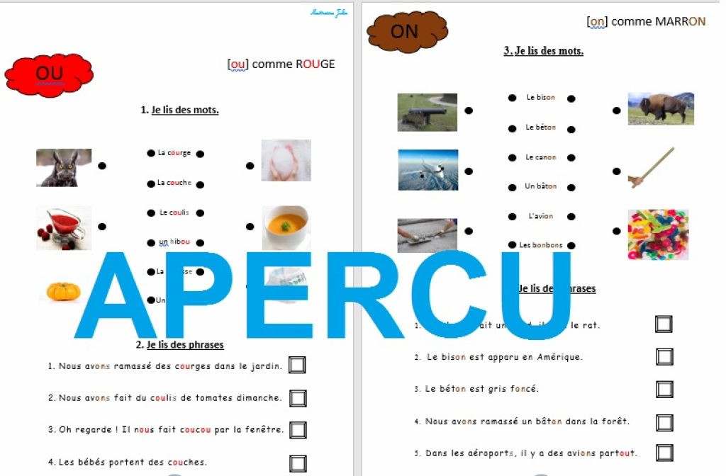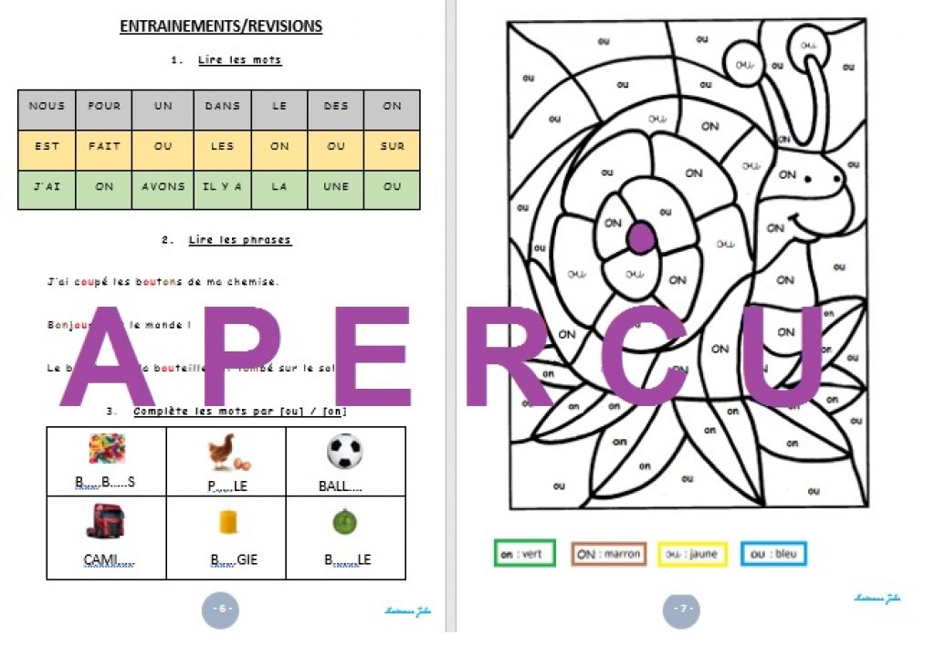 Il s’agit de divers exercices sur les sons [ou] et [on].