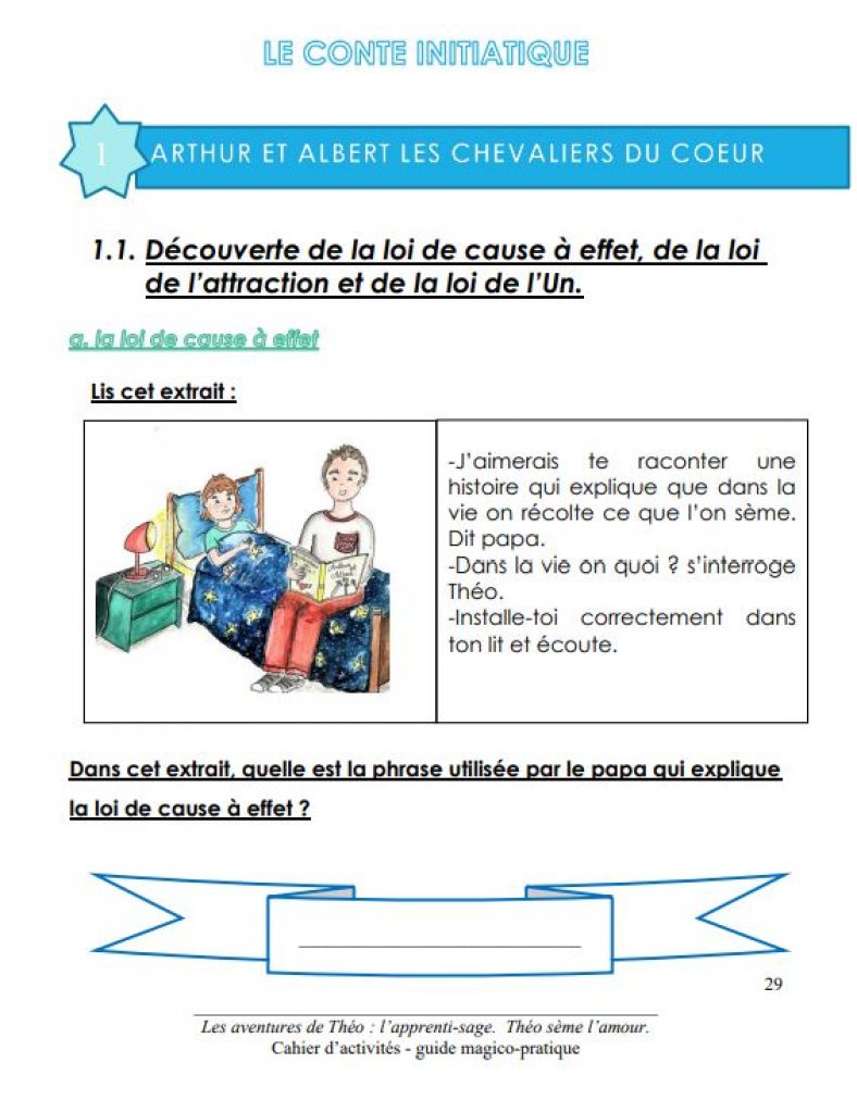 Puis avec le conte intiniatique: « Arthur et Albert, les chevaliers du coeur », les élèves découvriront les lois universelles.