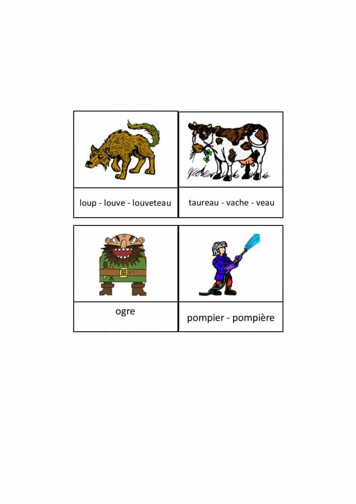 - une fiche sur les familles des animaux : mâle, femelle et petit.
