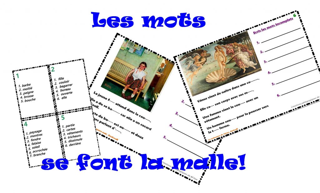 Retrouver des mots incomplets dans des  phrases en s’aidant du contexte et de l’œuvre d’art.