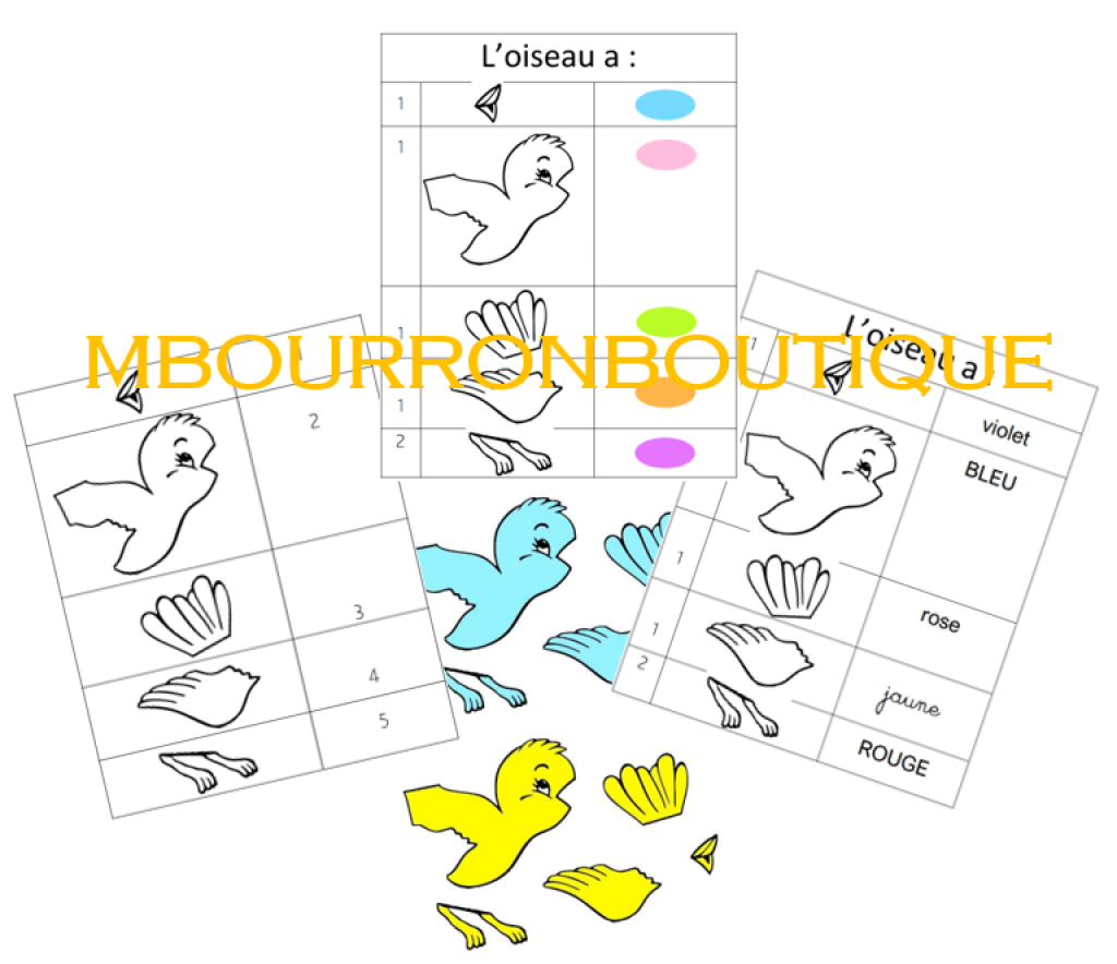 Ce jeu permet de travailler différentes compétences, la connaissance des différentes parties du corps des oiseaux, l’agencement dans l’espace, la reconnaissance des nombres et des couleurs, la lecture de tableau, la lecture des différentes types d’écriture…