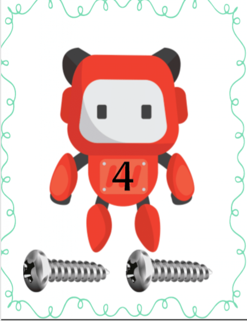 Niveau 3: Trouve le tatouage du robot indiquant le nombre de vis dont il a besoin. Compte le nombre de vis que le robot a déjà et ajoute ceux manquants.