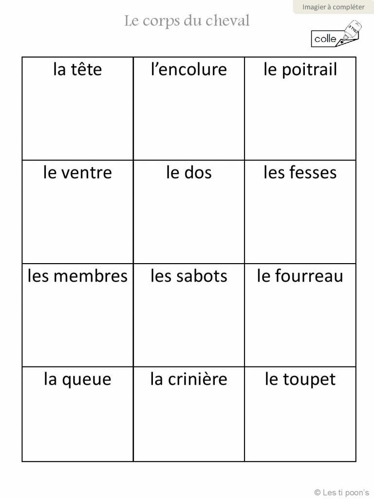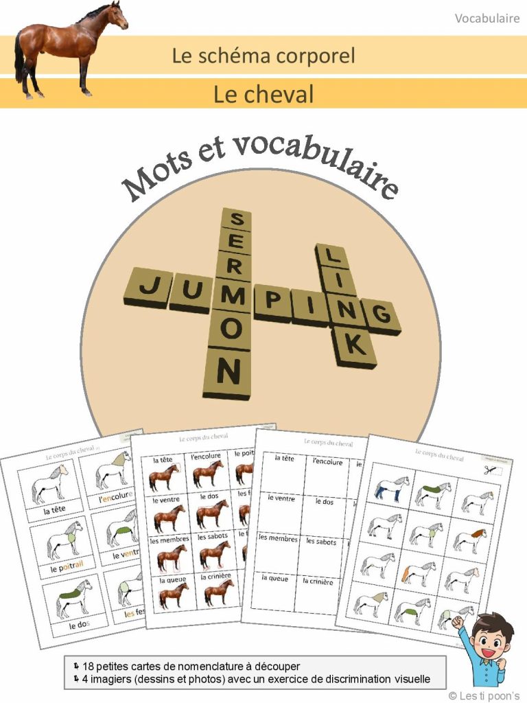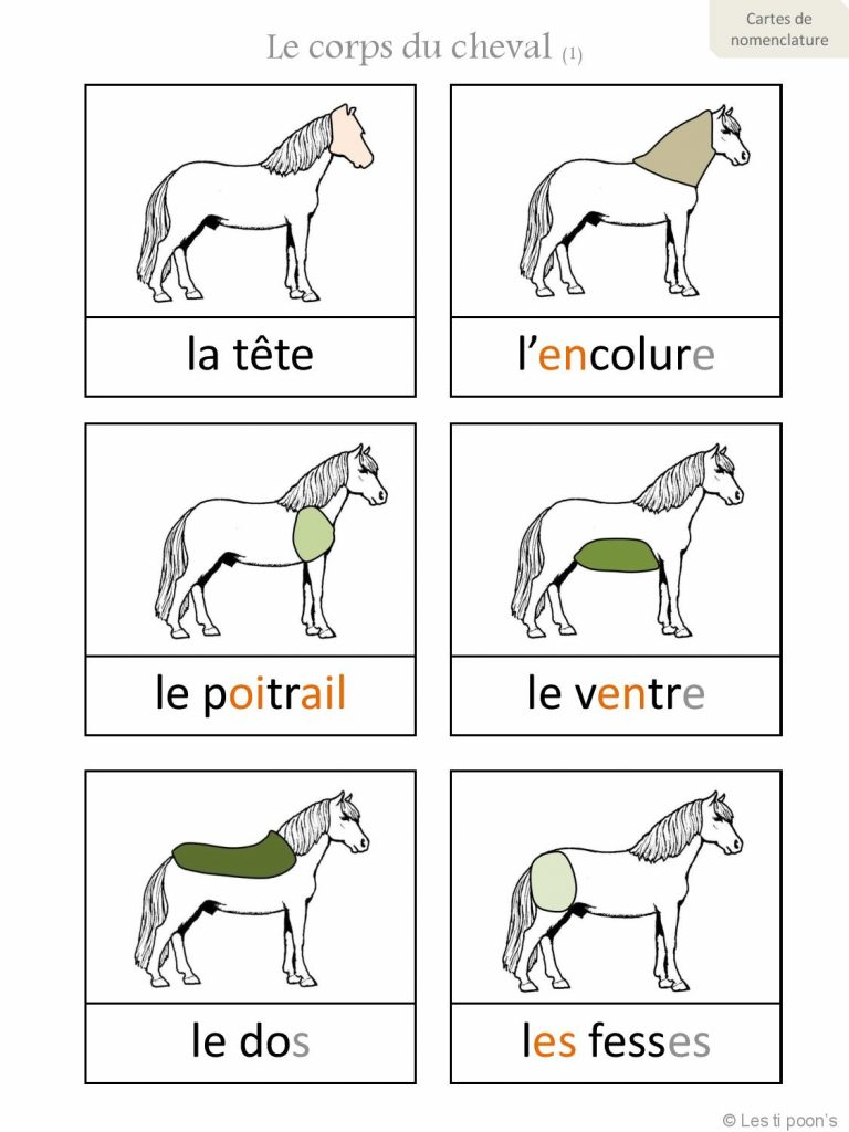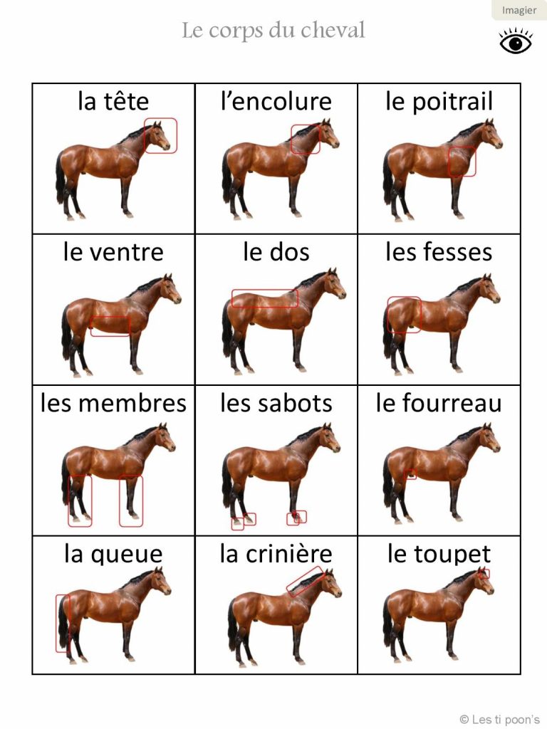 Différents imagiers pour apprendre et identifier les différentes parties du corps du cheval (schéma corporel)
