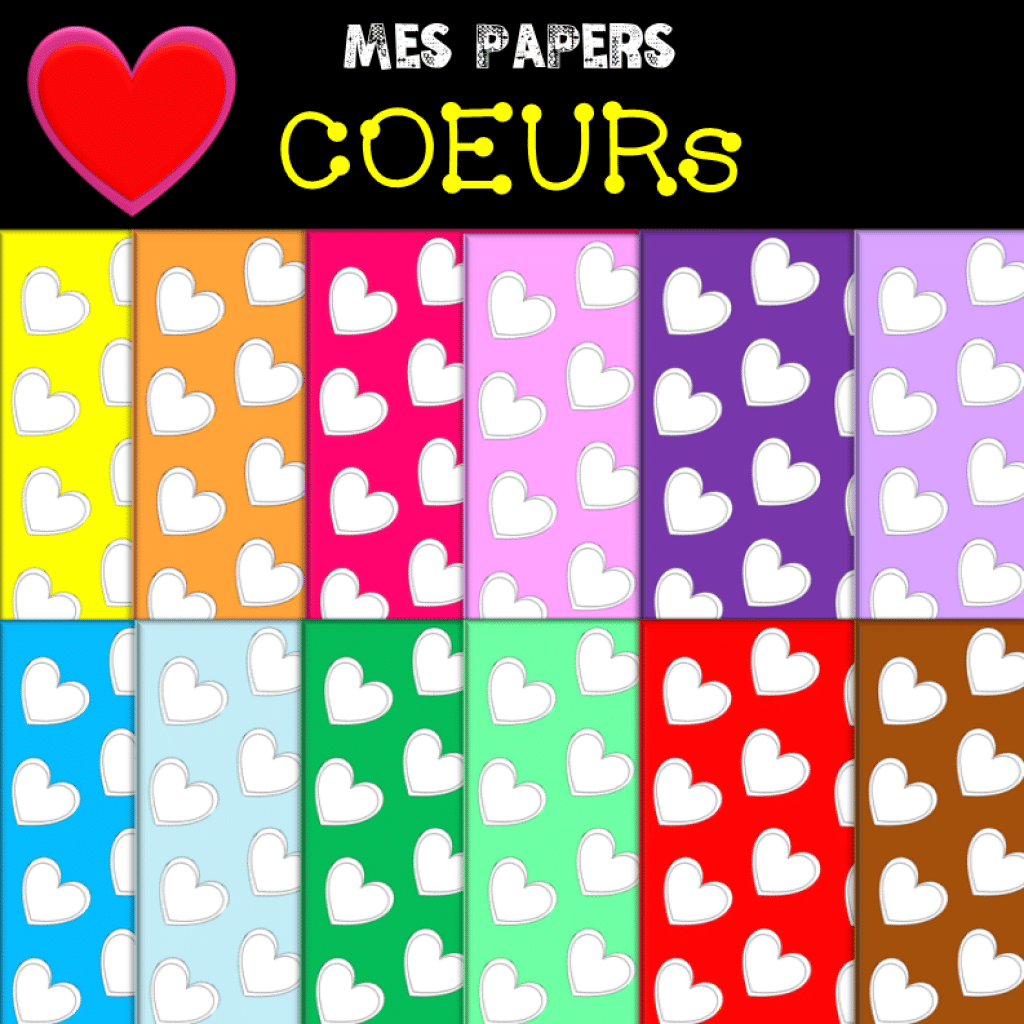 CLIQUE ICI POUR EN SAVOIR PLUSMes PAPERS Coeurs est un Pack qui comprend 12 couleurs de fonds aux motifs de coeurs.