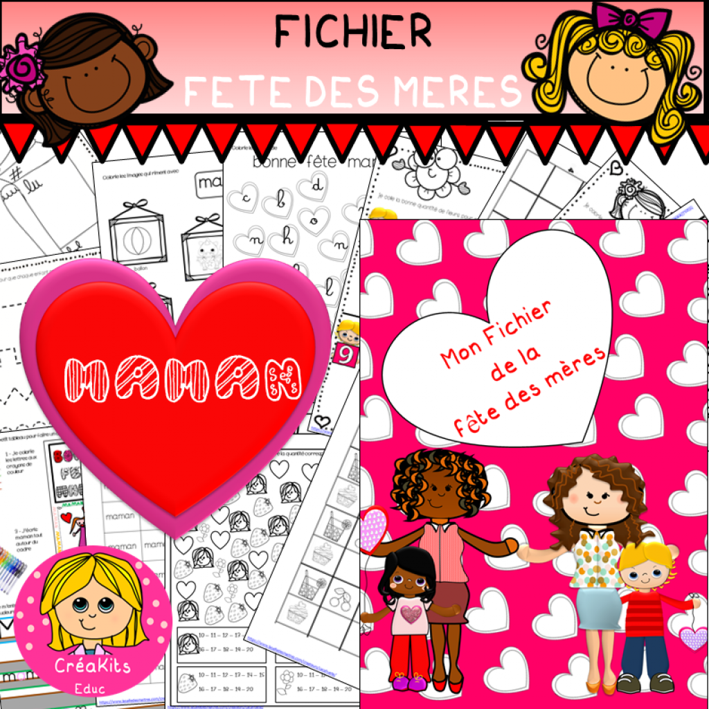 voici un fichier de 18 pages à destination des moyens et des grands du cycle 1, à faire sur le thème de la fête des mères au format pdf