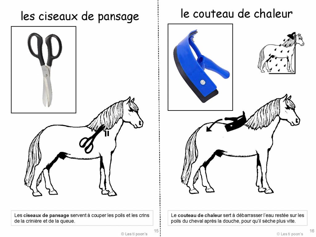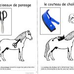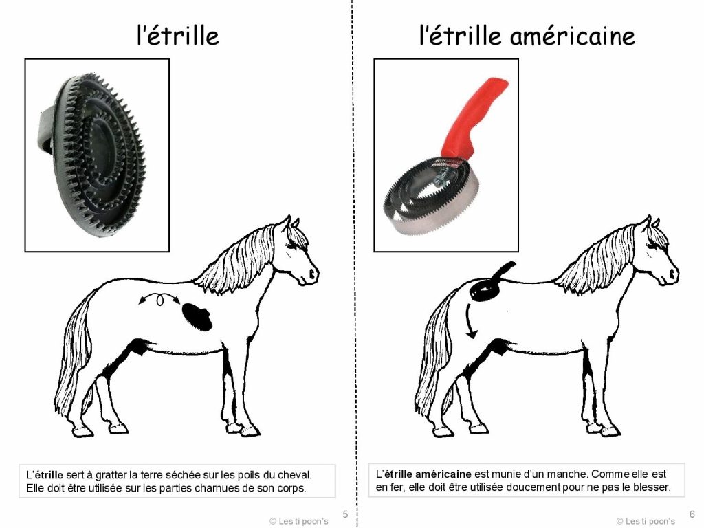 Un petit dictionnaire pour identifier les différents outils de pansage en équitation, ou compléter un travail sur les soins en séances de médiation équine : 11 feuilles A4 à imprimer, découper et relier pour former le livret de 22 pages au format A5