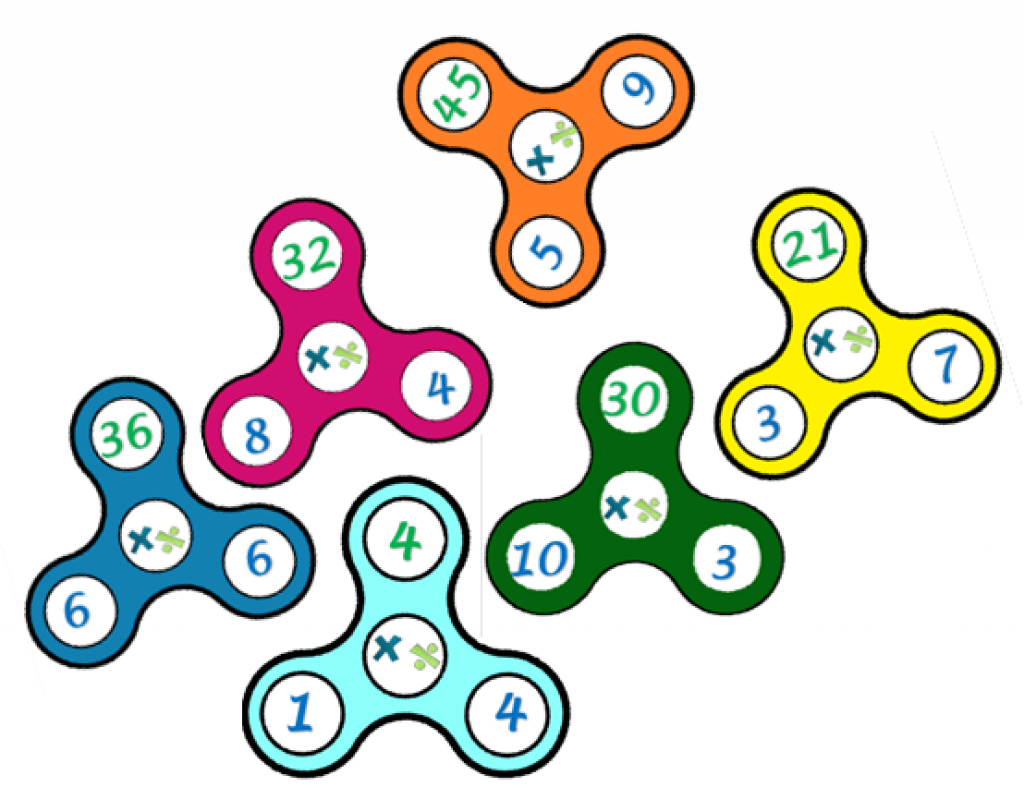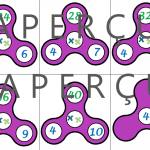 Voici un mémo en forme de spinner, très facilement manipulable par les enfants. Chaque spinner se lit dans le sens de la multiplication, ou dans le sens de la division.