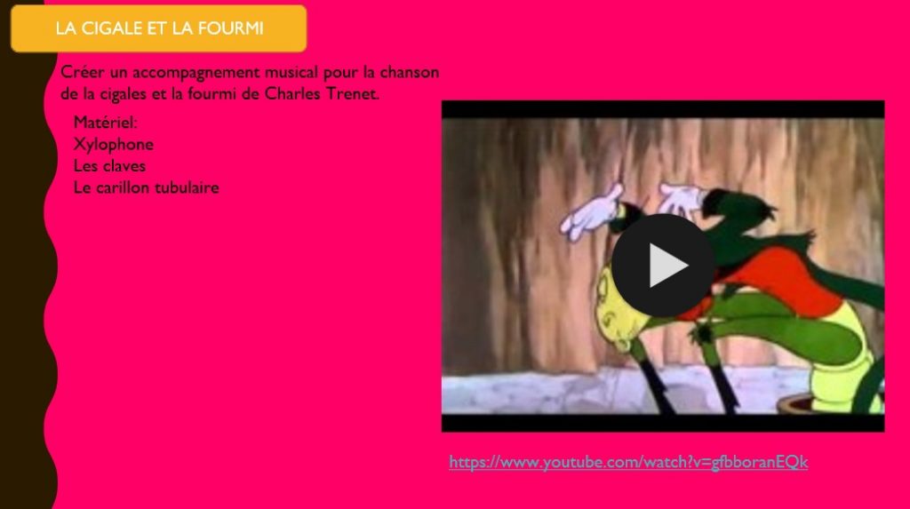 - 4 à 6 séances de musique de 30 minutes. (1 séance d’éducation musicale engageante par semaine pendant 6 semaines)