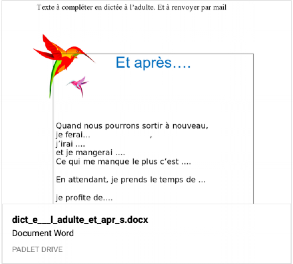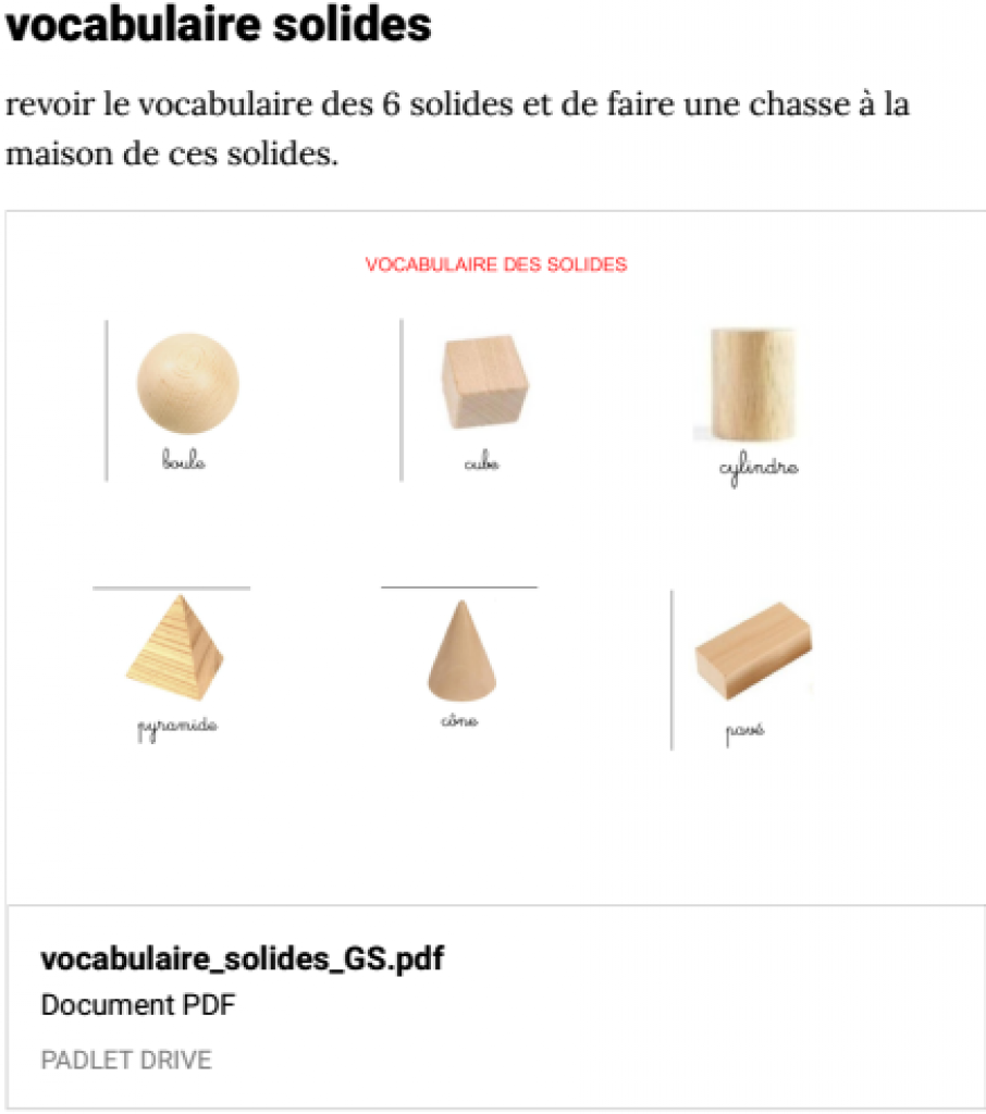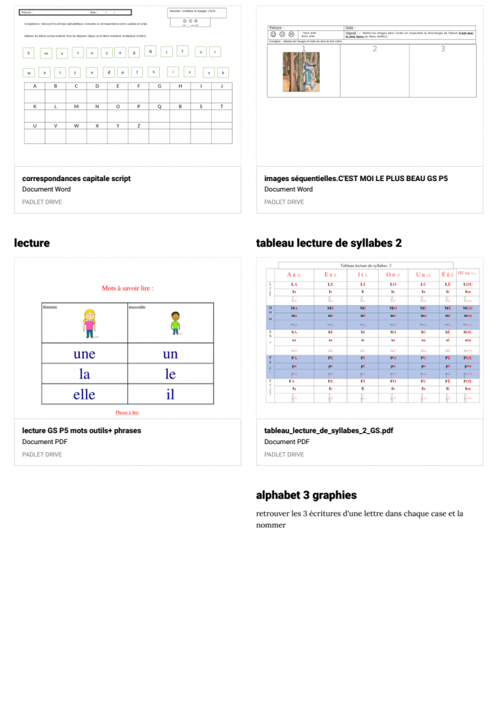 Padlet créé pour faciliter la continuité pédagogique dans tous les domaines en GS.