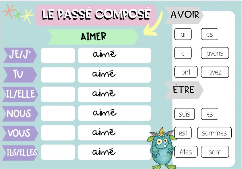 ⭐ Voici une activité GOOGLE SLIDES de conjugaison qui permettra à vos élèves de travailler le passé composé de l’indicatif des verbes en -er avec les auxiliaires avoir et être