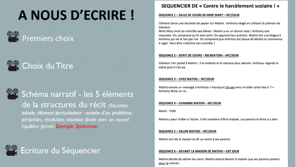 – Un modèle de scénario en document word que les élèves peuvent prendre en exemple