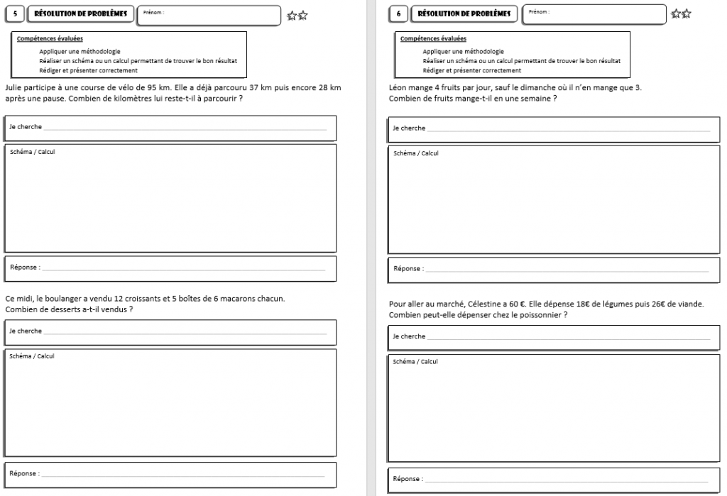 Matière : Maths – Résolution de problèmes