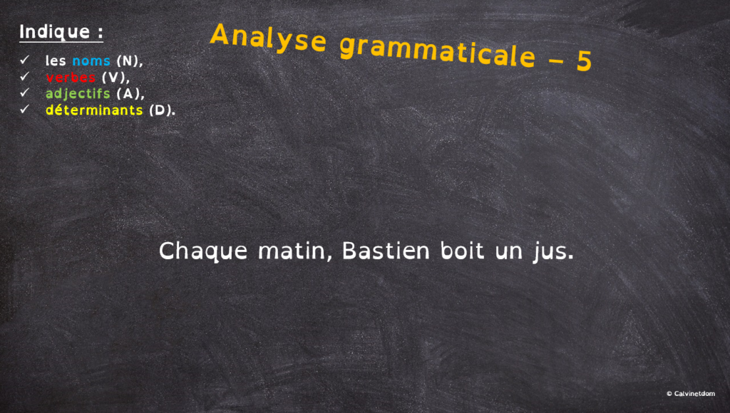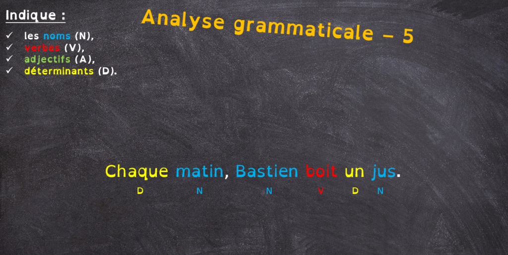 Identifier les noms, les verbes, les adjectifs et les déterminants.