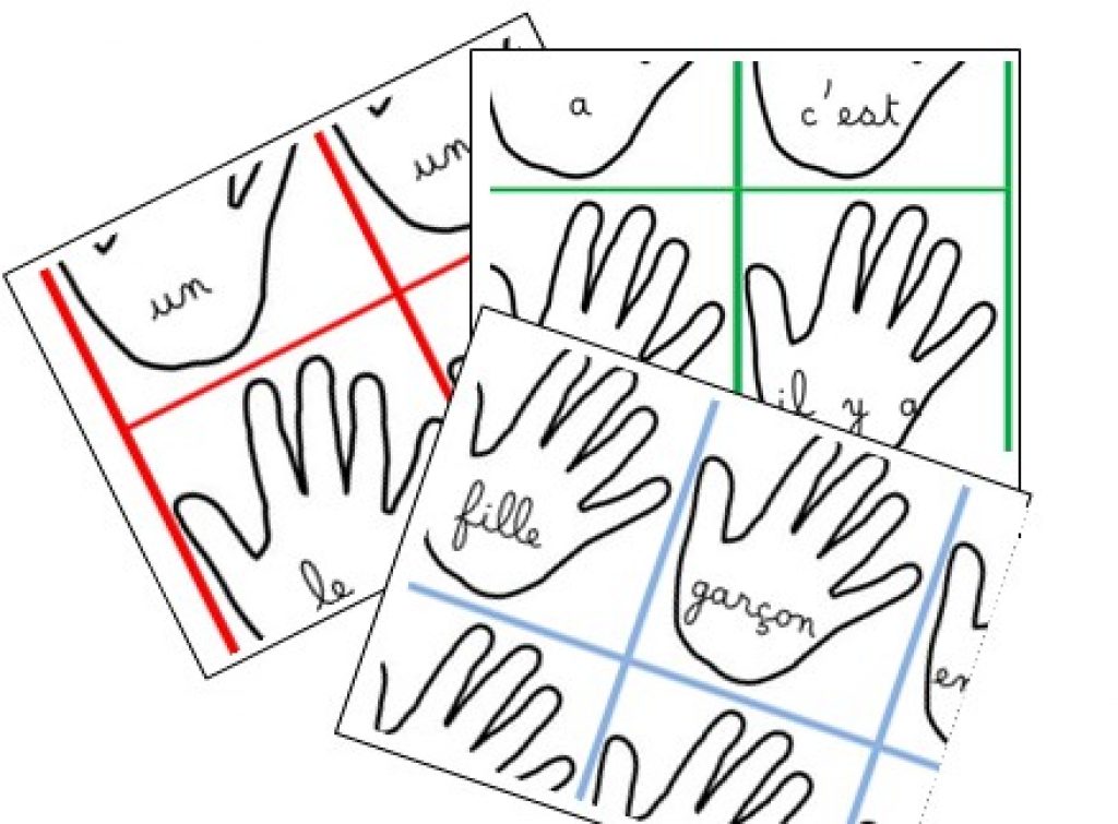 5 pages de 6 mains dans des cadres colorés correspondant au code suivant :