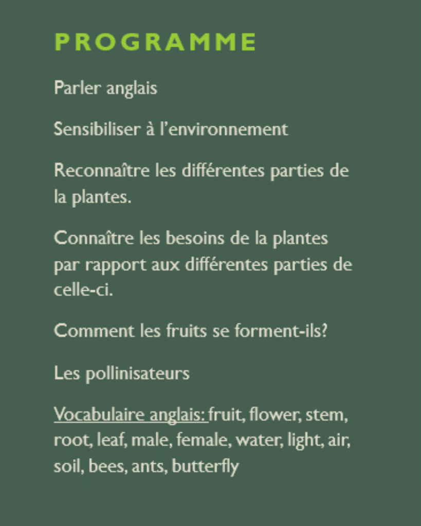 Ce que je propose, ce sont 5 séances autour du thème : les besoins des plantes (les parties de la plante, les besoins, la pollinisation). Vos élèves vont adorer cette séance qui leur permet d’observer, de dessiner et de comprendre le monde tout en parlant en anglais.