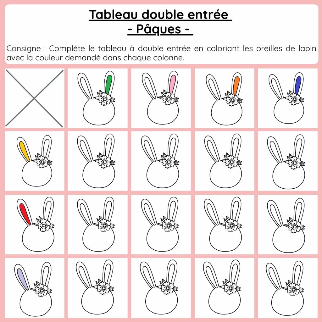 Tableau double entrée sur le thème de Pâques